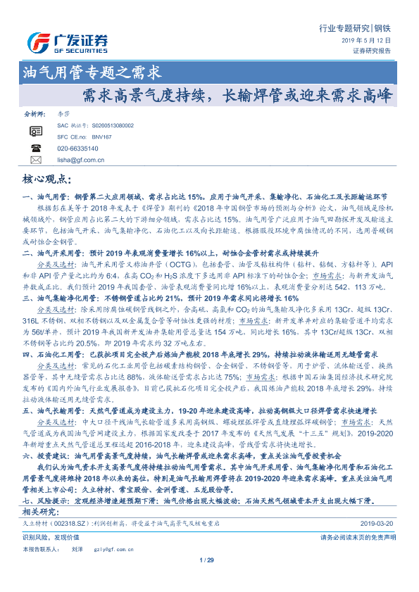 【广发证券】【20190512】油气用管专题之需求:需求高景气度持续,长输焊管或迎来需求高峰-29页