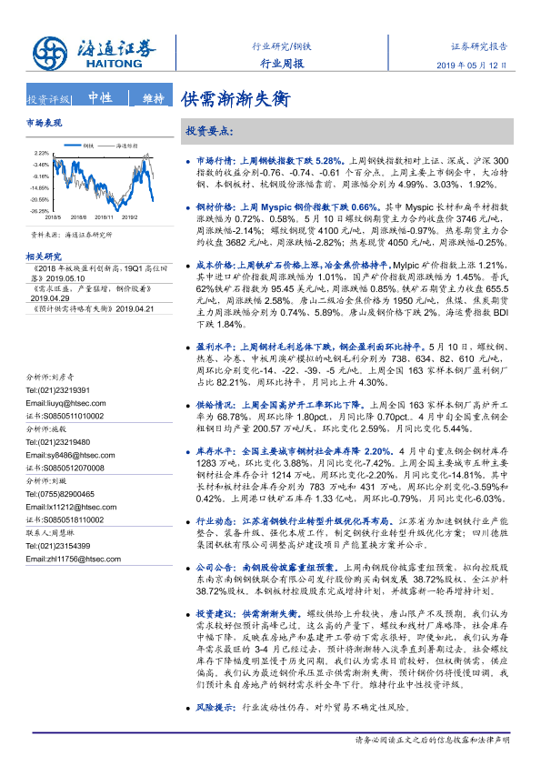 【海通证券】【20190512】20190512-海通证券-钢铁行业周报:供需渐渐失衡-14页