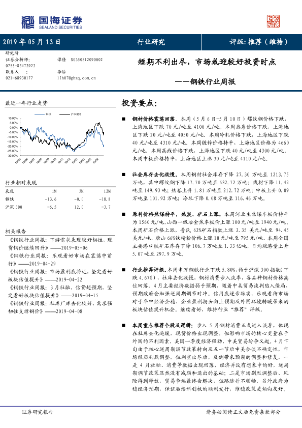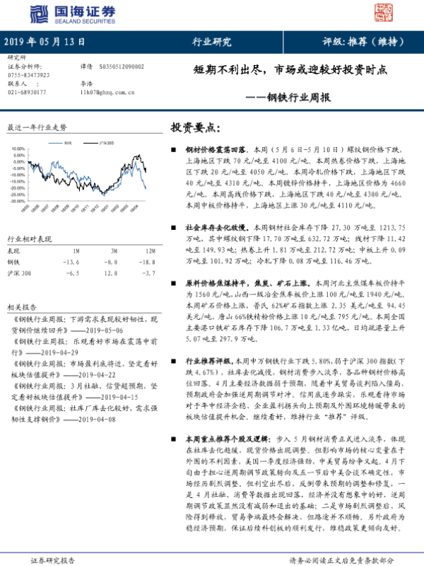 【国海证券】【20190513】20190513-国海证券-钢铁行业周报:短期不利出尽,市场或迎较好投资时点-14页
