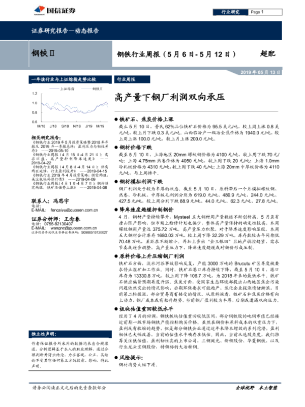 【国信证券】【20190513】20190513-国信证券-钢铁行业周报:高产量下钢厂利润双向承压-14页