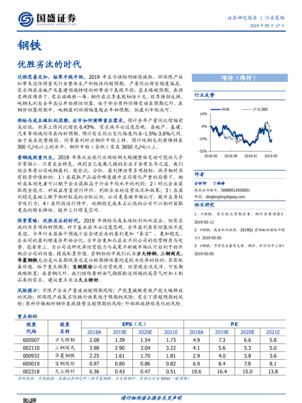 【国盛证券】【20190517】20190517-国盛证券-钢铁行业策略:优胜劣汰的时代-31页