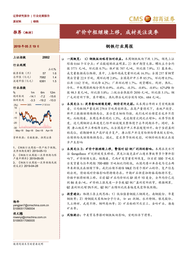 【海通证券】【20190519】20190519-招商证券-钢铁行业周报:矿价中枢继续上移,成材关注淡季-10页