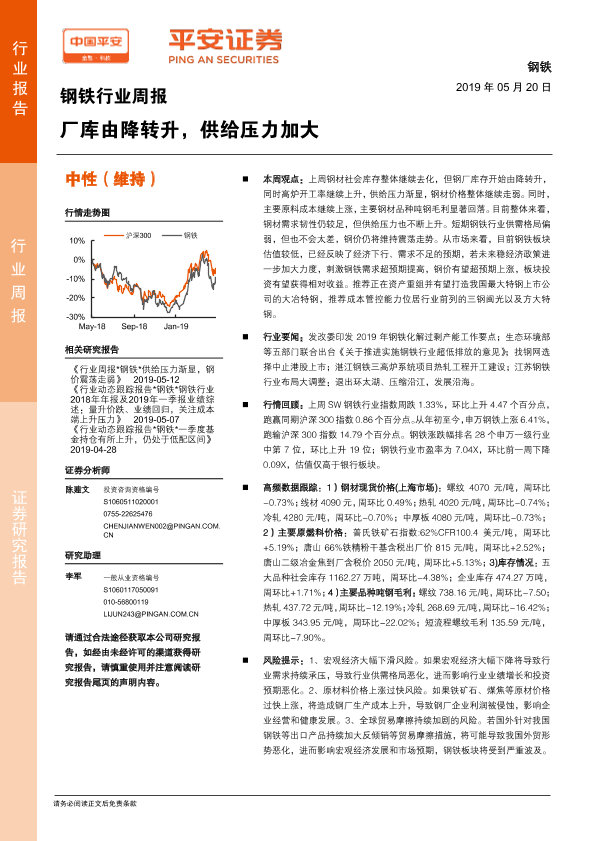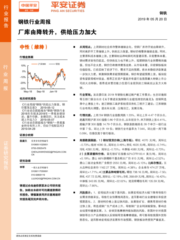 【平安证券】【20190520】钢铁行业周报:厂库由降转升,供给压力加大-5页