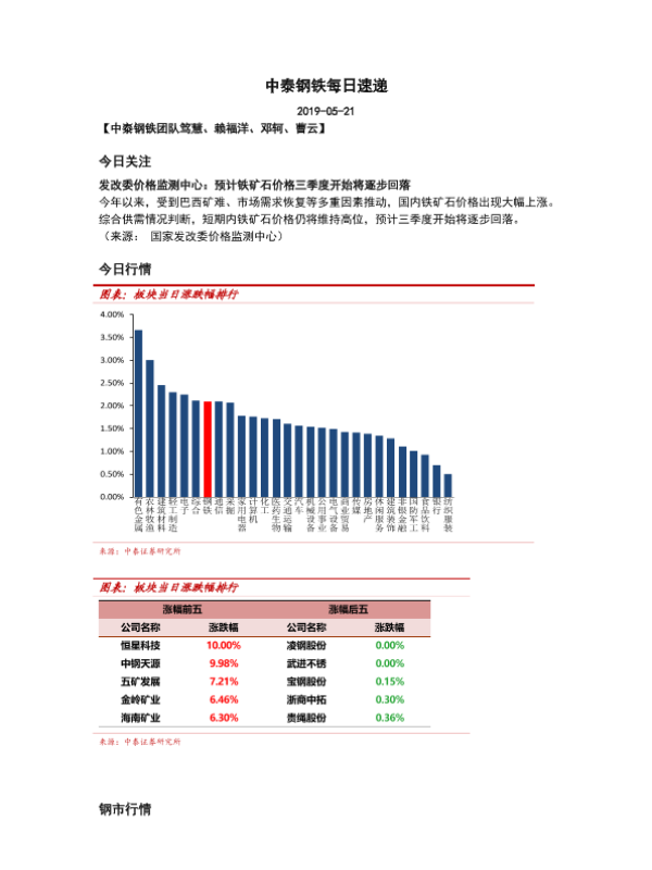【中泰证券】【20190521】中泰钢铁每日速递-5页