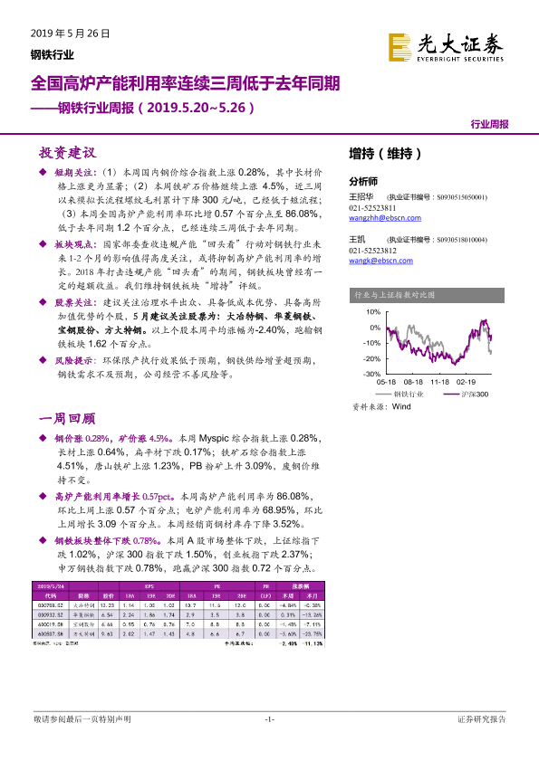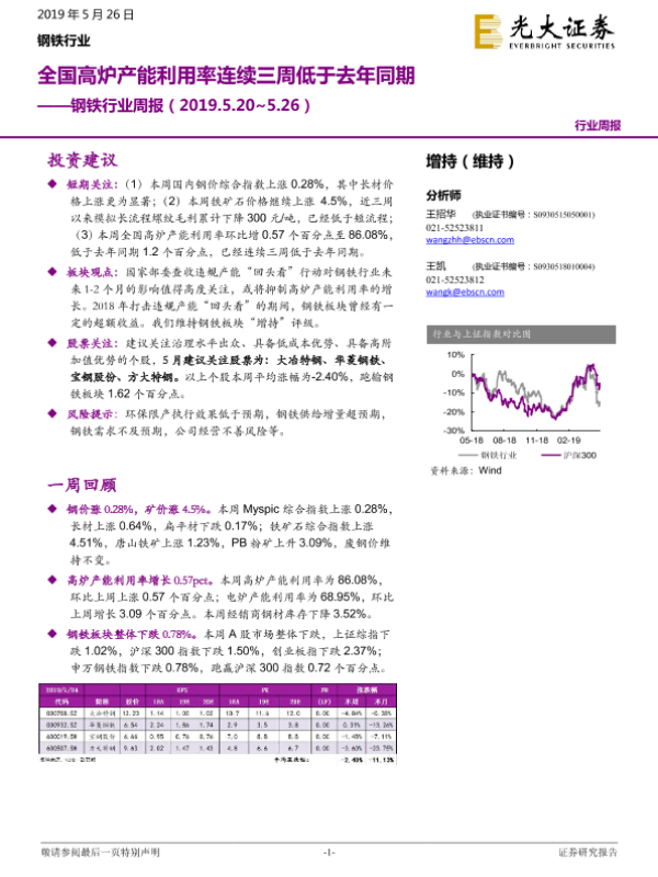 【光大证券】【20190526】20190526-光大证券-钢铁行业周报:全国高炉产能利用率连续三周低于去年同期-9页