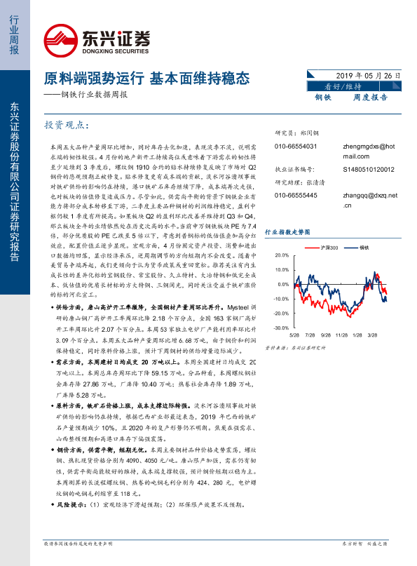 【东兴证券】【20190526】钢铁行业数据周报:原料端强势运行 基本面维持稳态-21页