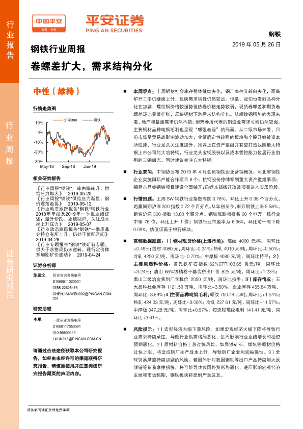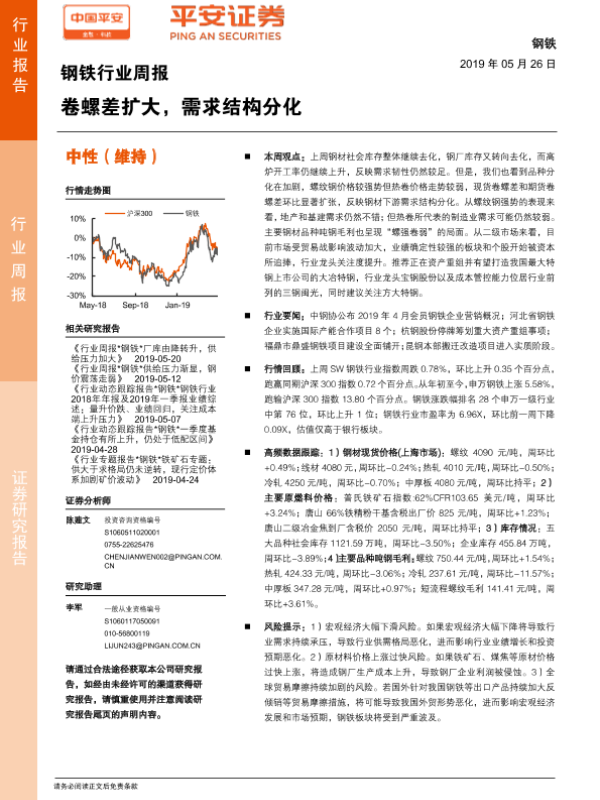 【平安证券】【20190526】20190526-平安证券-钢铁行业周报:卷螺差扩大,需求结构分化-5页