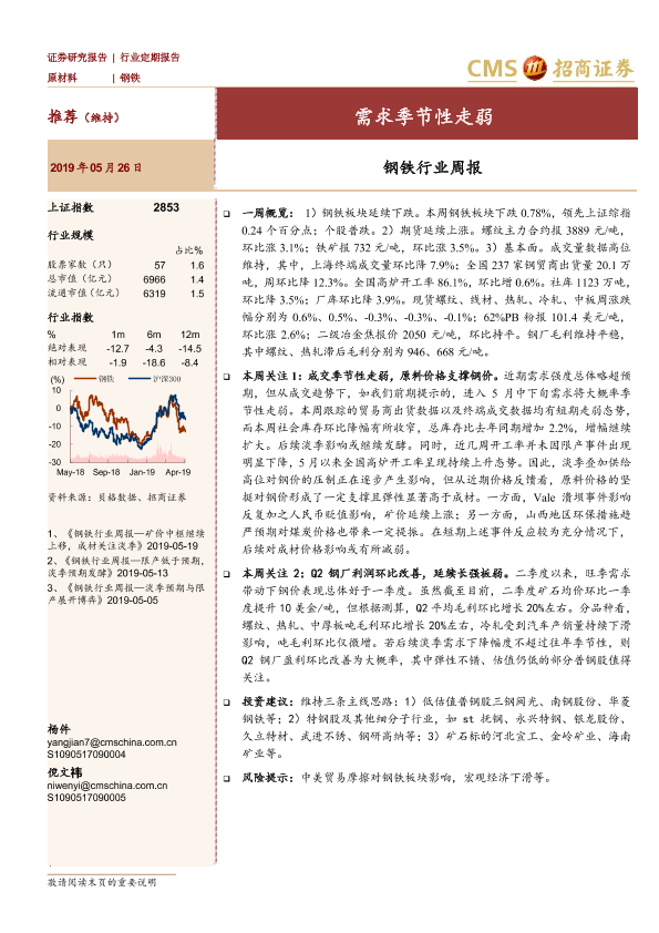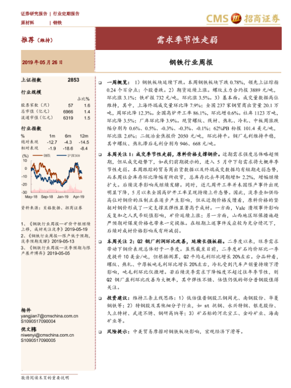 【海通证券】【20190526】20190526-招商证券-钢铁行业周报:需求季节性走弱-11页