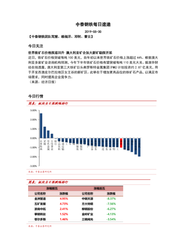 【中泰证券】【20190530】中泰钢铁每日速递-5页