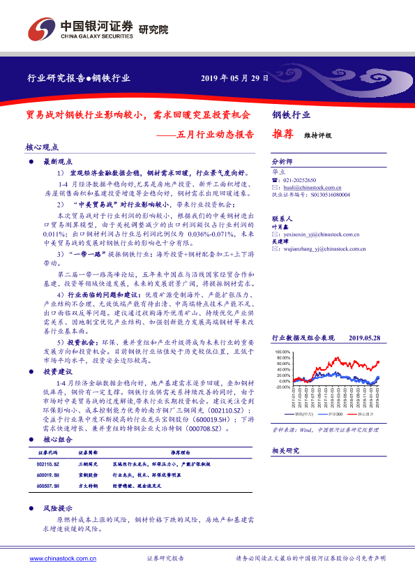 【银河证券】【20190529】20190529-中国银河-钢铁行业:五月行业动态报告:贸易战对钢铁行业影响较小,需求回暖突显投资机会-26页