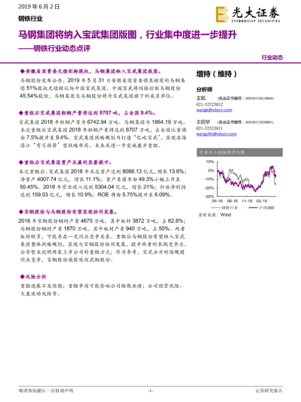 【光大证券】【20190602】钢铁行业动态点评:马钢集团将纳入宝武集团版图,行业集中度进一步提升-7页