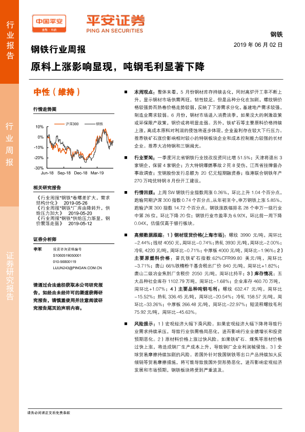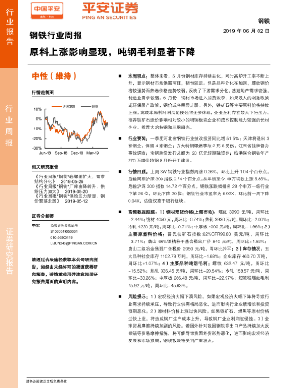 【平安证券】【20190602】20190602-平安证券-钢铁行业周报:原料上涨影响显现,吨钢毛利显著下降-5页