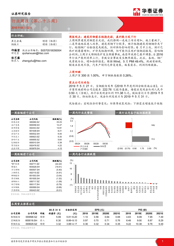 【华泰证券】【20190602】20190602-华泰证券-黑色金属行业周报(第二十二周)-22页