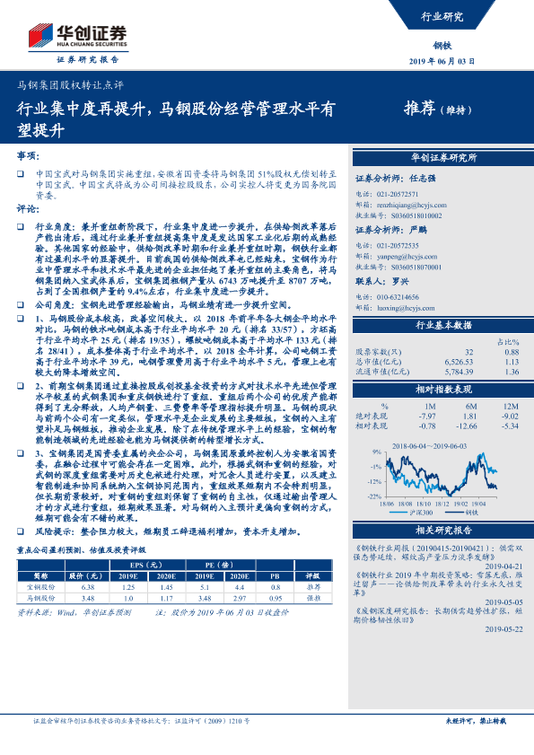 【华创证券】【20190603】20190603-华创证券-马钢集团股权转让点评:行业集中度再提升,马钢股份经营管理水平有望提升-4页