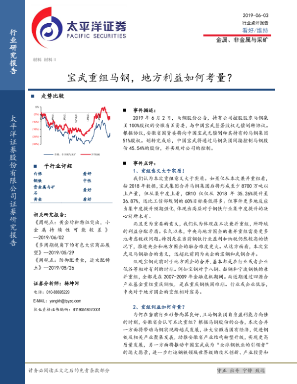 【太平洋证券】【20190603】宝武重组马钢,地方利益如何考量?-5页
