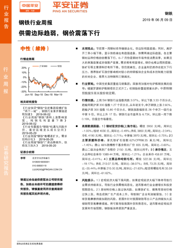 【平安证券】【20190609】20190609-平安证券-钢铁行业周报:供需边际趋弱,钢价震荡下行-5页