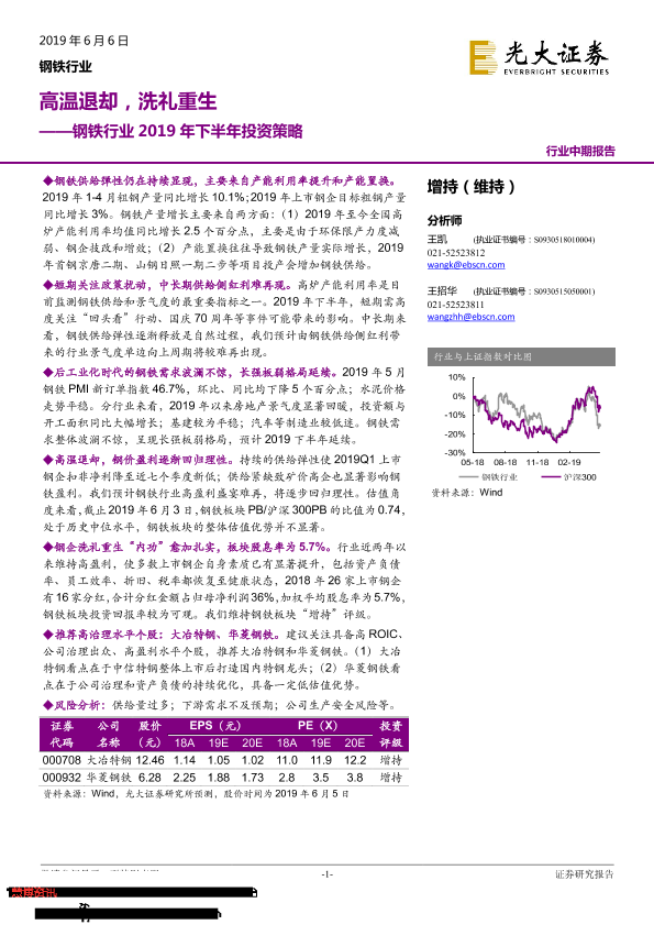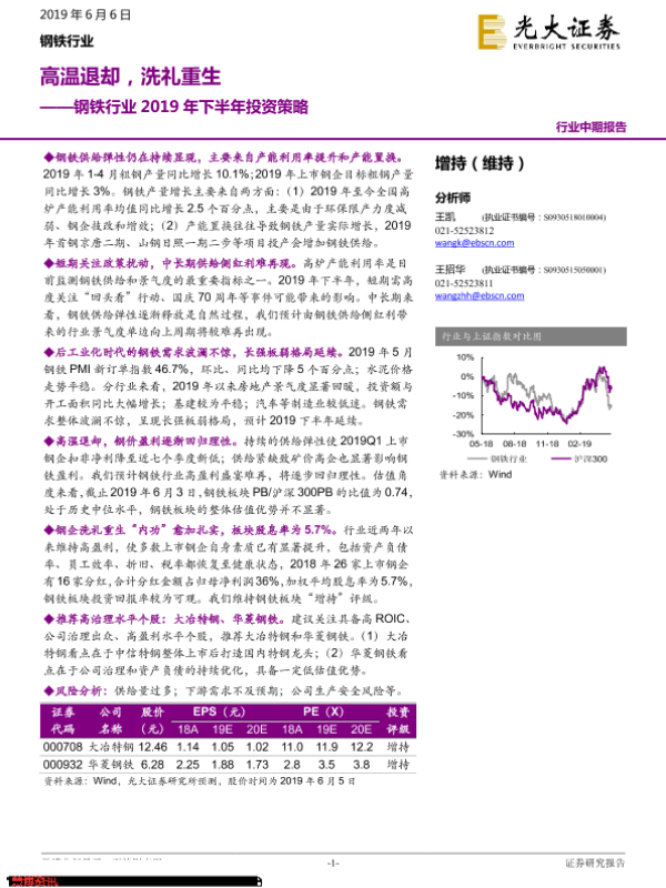 【光大证券】【20190606】钢铁行业2019年下半年投资策略:高温退却,洗礼重生-22页