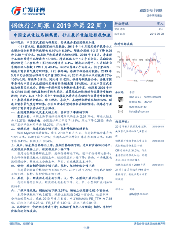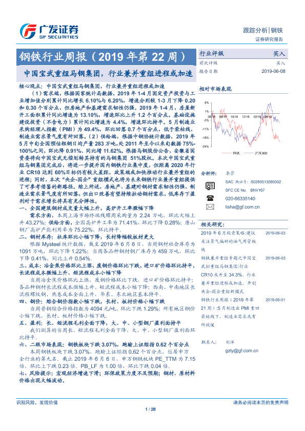 【广发证券】【20190608】2019年第22周钢铁行业周报:中国宝武重组马钢集团,行业兼并重组进程或加速-26页