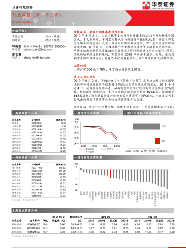【华泰证券】【20190609】20190609-华泰证券-黑色金属行业周报(第二十三周)-22页