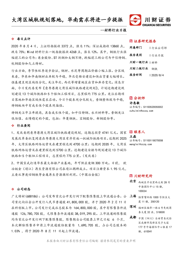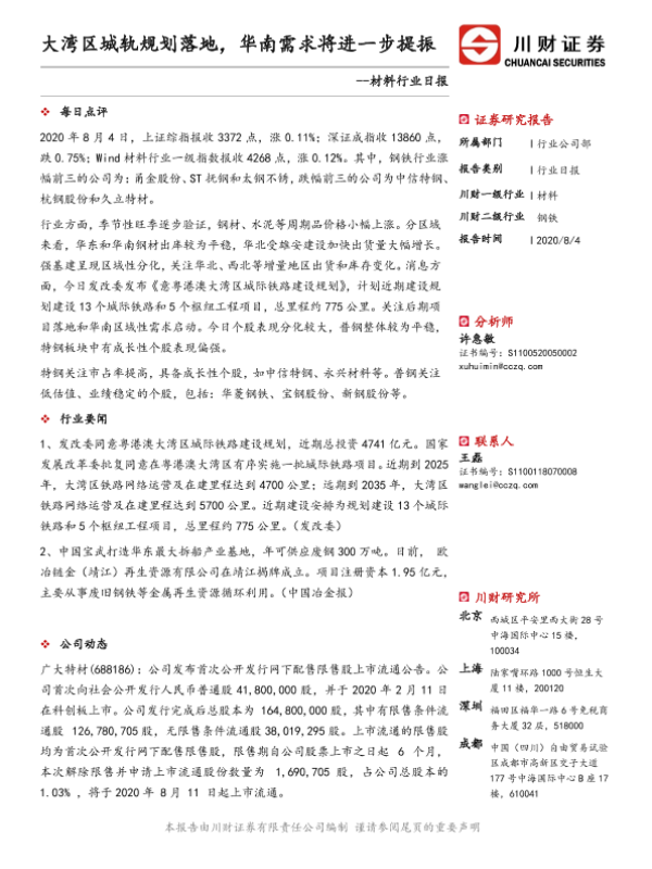 【川财证券】【20200804】材料行业日报:大湾区城轨规划落地,华南需求将进一步提振-3页