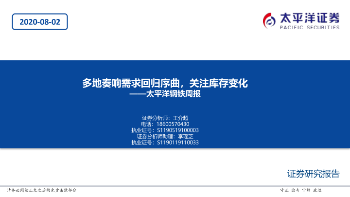 【太平洋证券】【20200802】20200802-太平洋-钢铁周报:多地奏响需求回归序曲,关注库存变化-51页