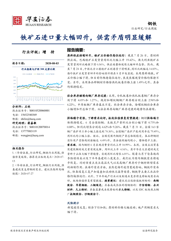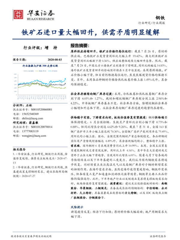 【华安证券】【20200803】20200803-华安证券-钢铁行业周报:铁矿石进口量大幅回升,供需矛盾明显缓解-26页