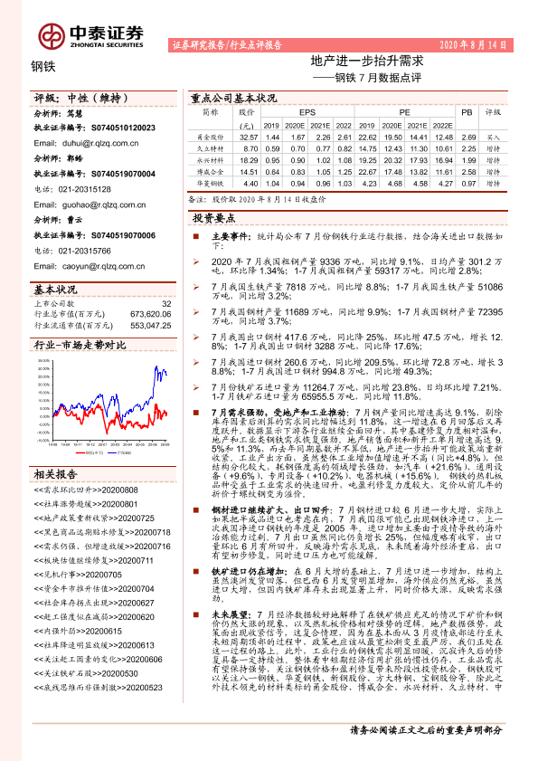 【中泰证券】【20200814】钢铁7月数据点评:地产进一步抬升需求-5页
