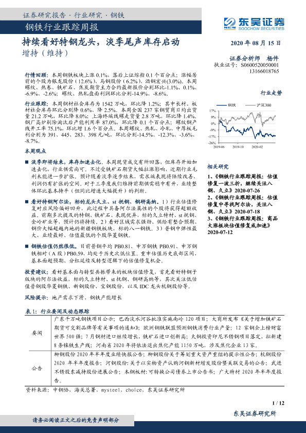 【东吴证券】【20200815】20200815-东吴证券-钢铁行业跟踪周报:持续看好特钢龙头,淡季尾声库存启动-12页