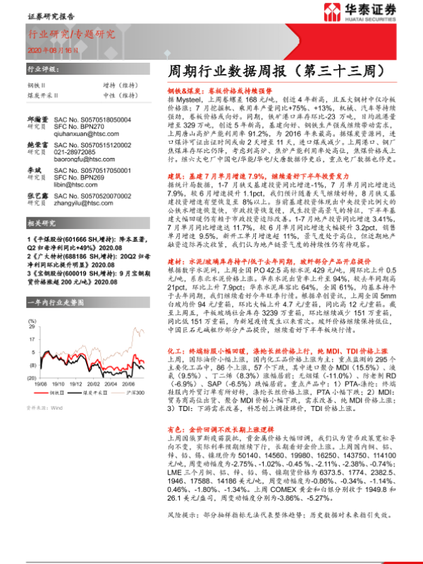 【华泰证券】【20200816】20200816-华泰证券-钢铁-周期行业数据周报(第三十三周)-48页