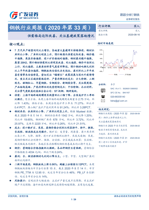【广发证券】【20200816】20200816-广发证券-钢铁行业周报(2020年第33周):供需格局边际改善,关注基建政策落地情况-29页