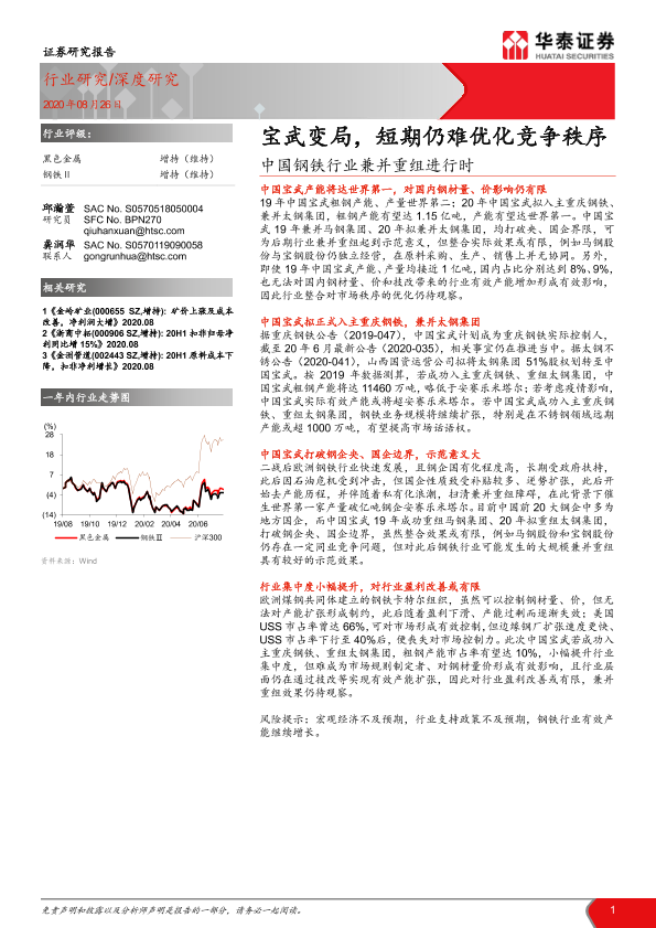 【华泰证券】【20200826】中国钢铁行业兼并重组进行时-宝武变局,短期仍难优化竞争秩序-16页