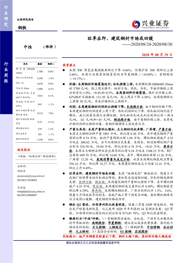 【兴业证券】【20200829】旺季在即,建筑钢材市场或回暖-17页
