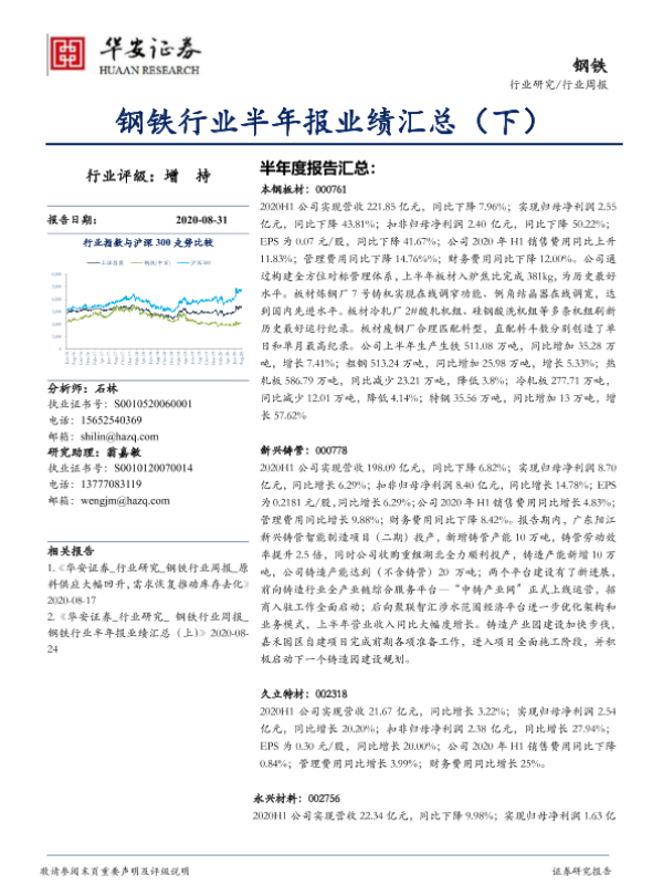 【华安证券】【20200831】20200831-华安证券-钢铁行业周报:钢铁行业半年报业绩汇总(下)-32页