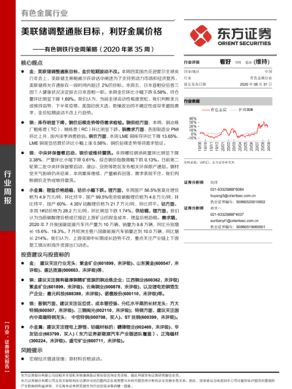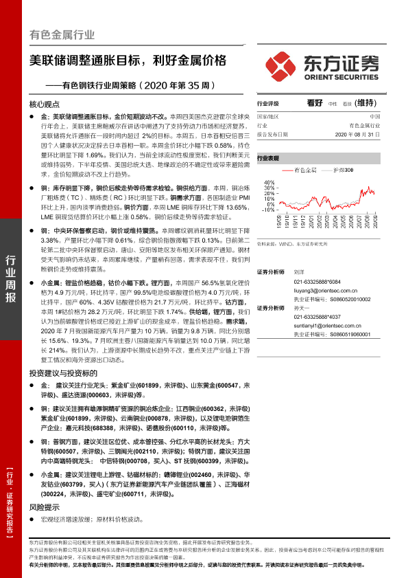 【东方证券】【20200831】20200831-东方证券-有色钢铁行业周策略:美联储调整通胀目标,利好金属价格-27页