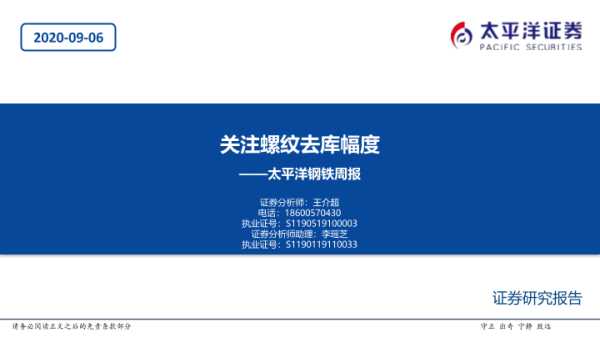 【太平洋证券】【20200906】20200906-太平洋-钢铁周报:关注螺纹去库幅度-52页