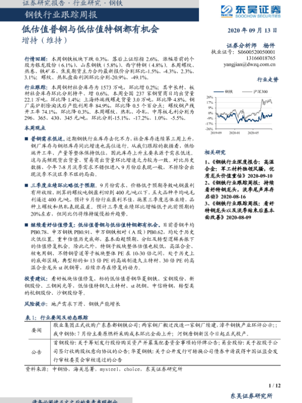 【东吴证券】【20200913】20200913-东吴证券-钢铁行业跟踪周报:低估值普钢与低估值特钢都有机会-12页