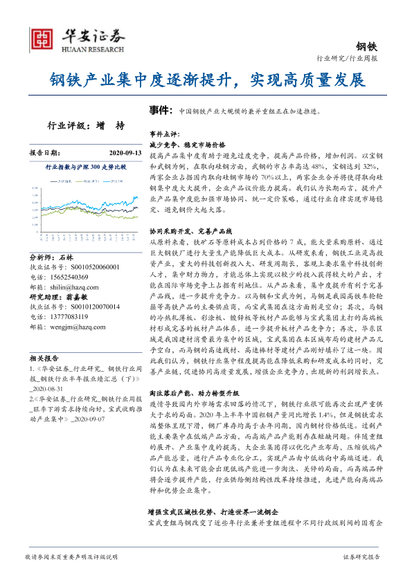 【华安证券】【20200913】钢铁:钢铁产业集中度逐渐提升,实现高质量发展-27页