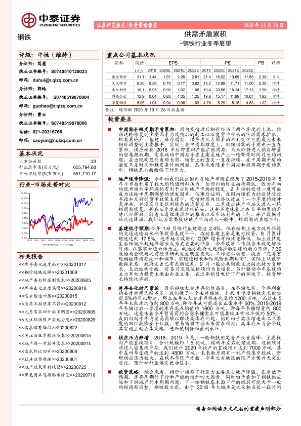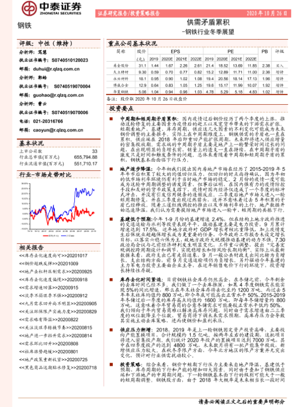 【中泰证券】【20201026】钢铁行业冬季展望:供需矛盾累积-18页