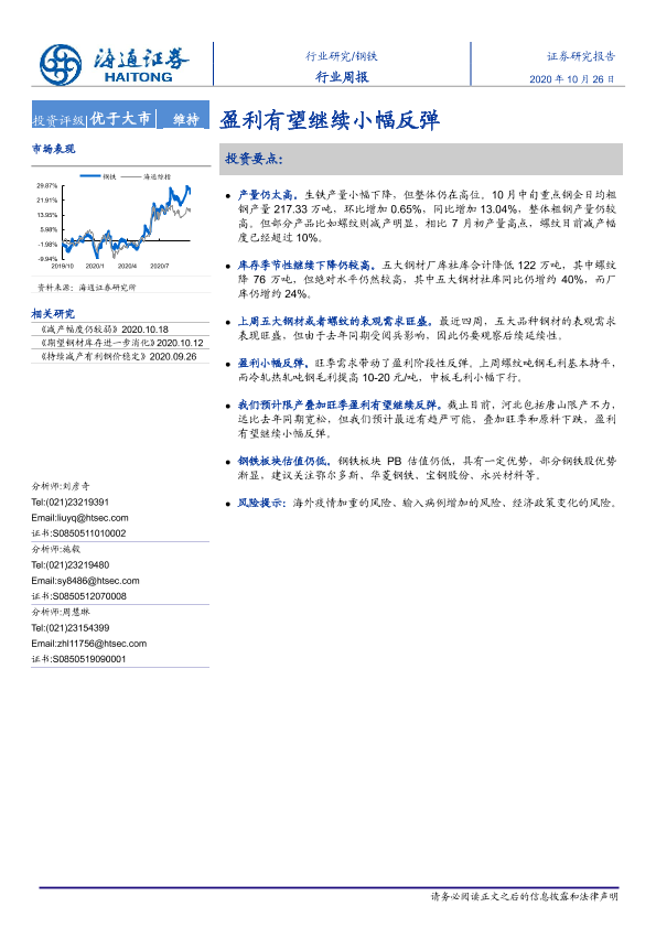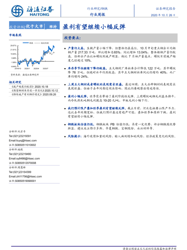 【海通证券】【20201026】钢铁行业周报:盈利有望继续小幅反弹-13页