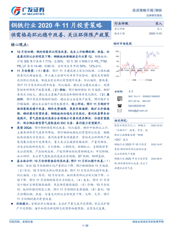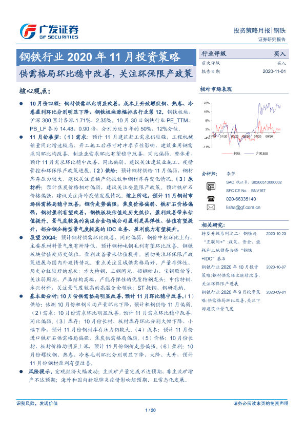 【广发证券】【20201101】钢铁行业2020年11月投资策略:供需格局环比稳中改善,关注环保限产政策-20页