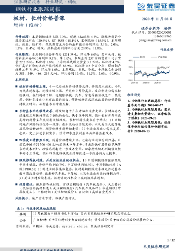【东吴证券】【20201108】钢铁行业跟踪周报:板材、长材价格普涨-12页