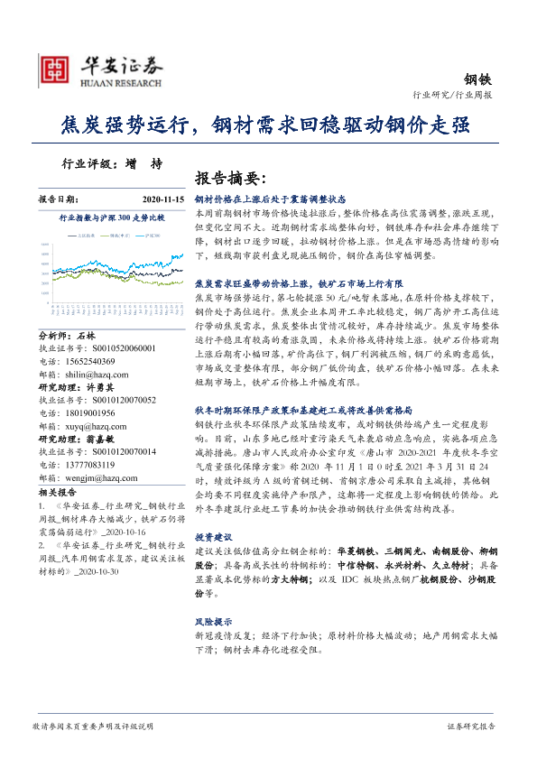 【华安证券】【20201115】20201115-华安证券-钢铁行业周报:焦炭强势运行,钢材需求回稳驱动钢价走强-19页