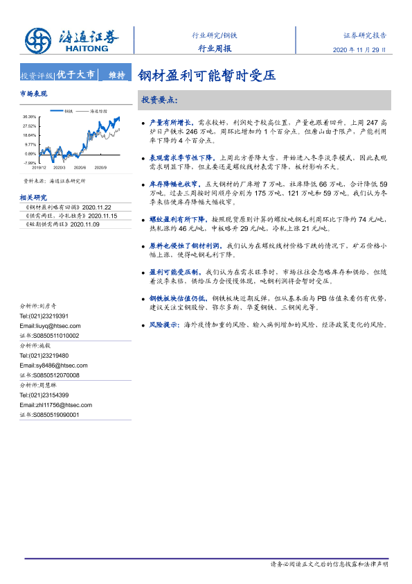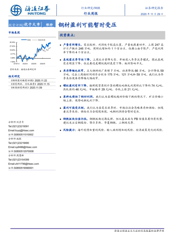 【海通证券】【20201129】20201129-海通证券-钢铁行业周报:钢材盈利可能暂时受压-13页