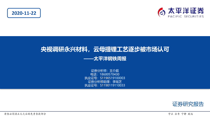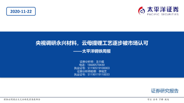 【太平洋证券】【20201122】20201122-太平洋-钢铁周报:央视调研永兴材料,云母提锂工艺逐步被市场认可-52页