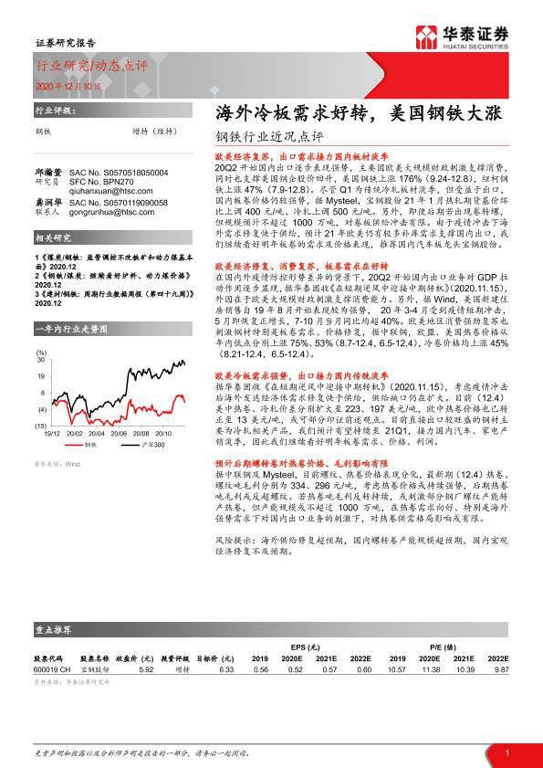 【华泰证券】【20201210】钢铁行业近况点评:海外冷板需求好转,美国钢铁大涨-5页