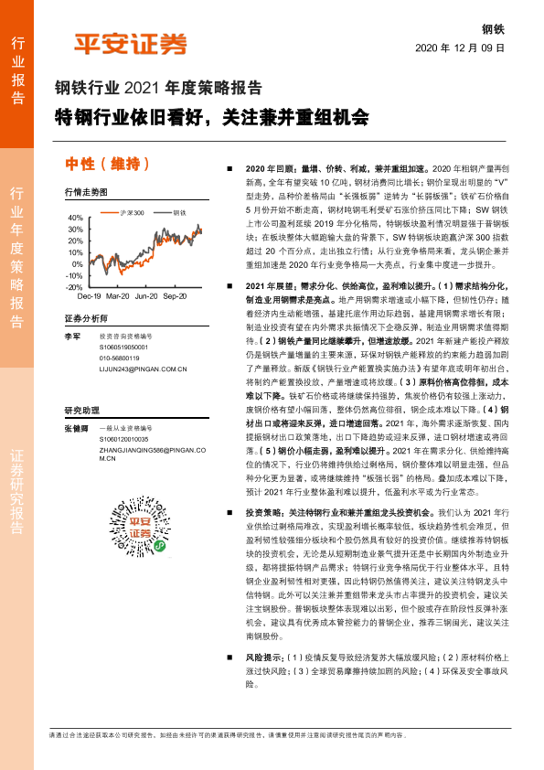 【平安证券】【20201209】钢铁行业2021年度策略报告:特钢行业依旧看好,关注兼并重组机会-28页