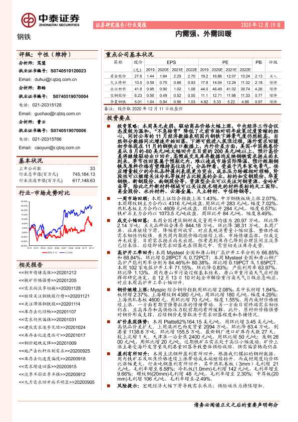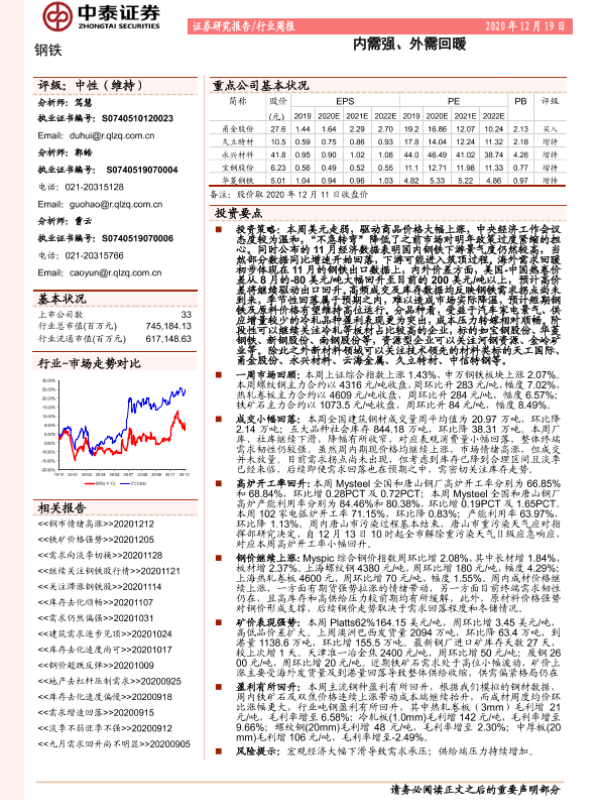 【中泰证券】【20201219】20201219-中泰证券-钢铁行业周报:内需强、外需回暖-13页