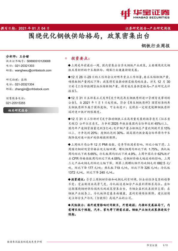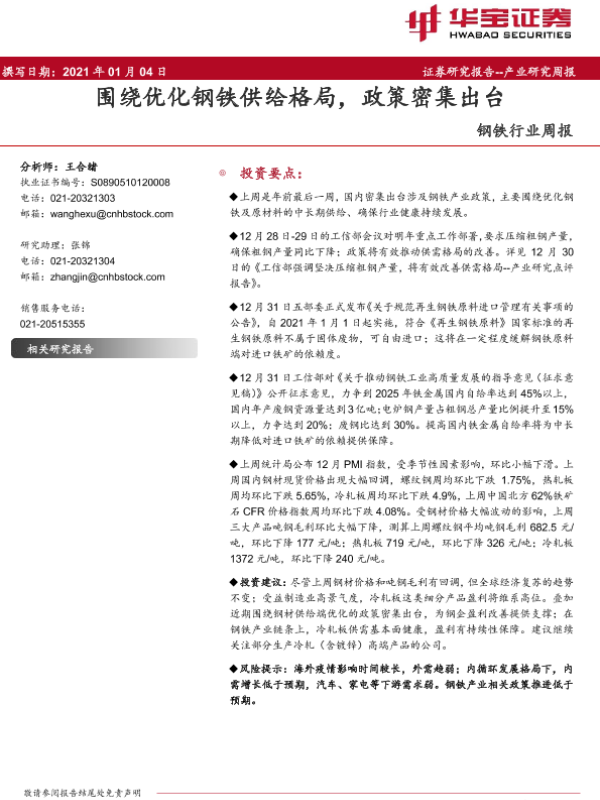 【华宝证券】【20210104】20210104-华宝证券-钢铁行业周报:围绕优化钢铁供给格局,政策密集出台-11页