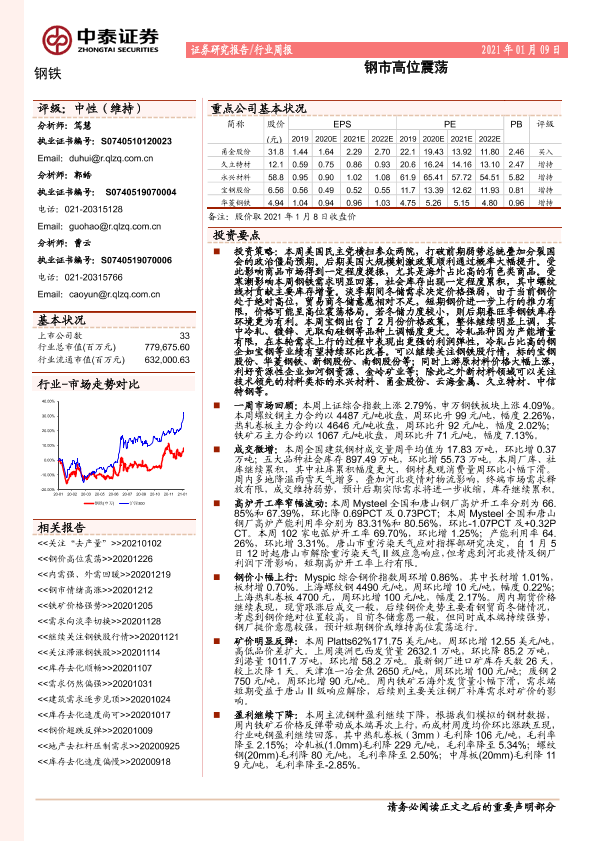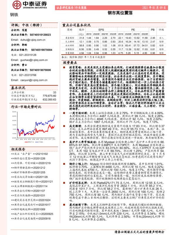 【中泰证券】【20210109】20210109-中泰证券-钢铁行业周报:钢市高位震荡-13页