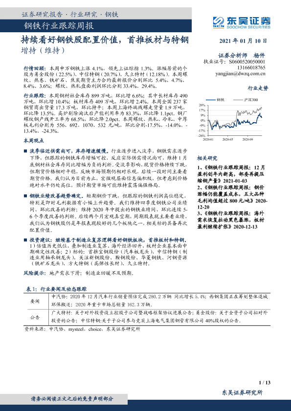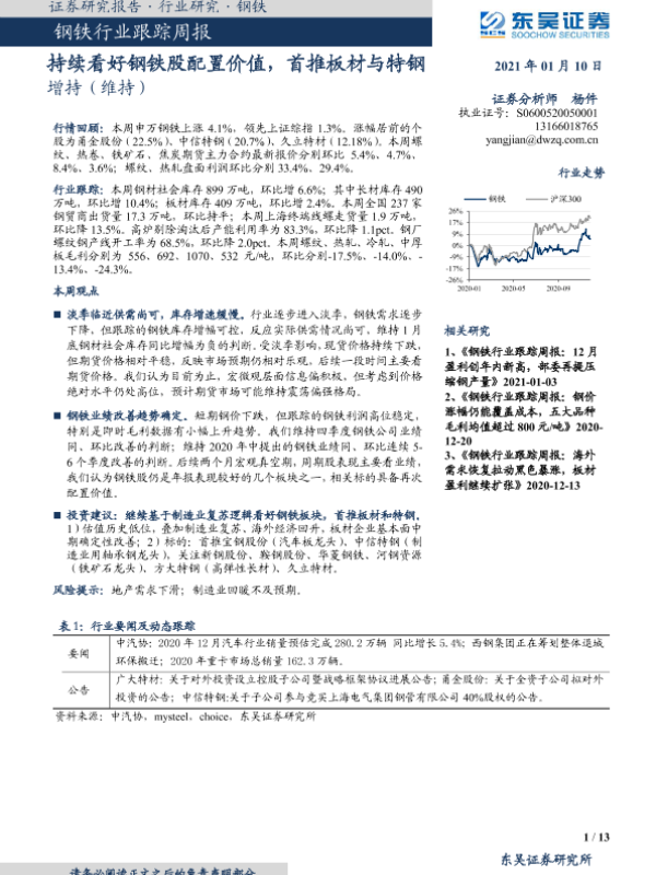 【东吴证券】【20210110】20210110-东吴证券-钢铁行业跟踪周报:持续看好钢铁股配置价值,首推板材与特钢-13页